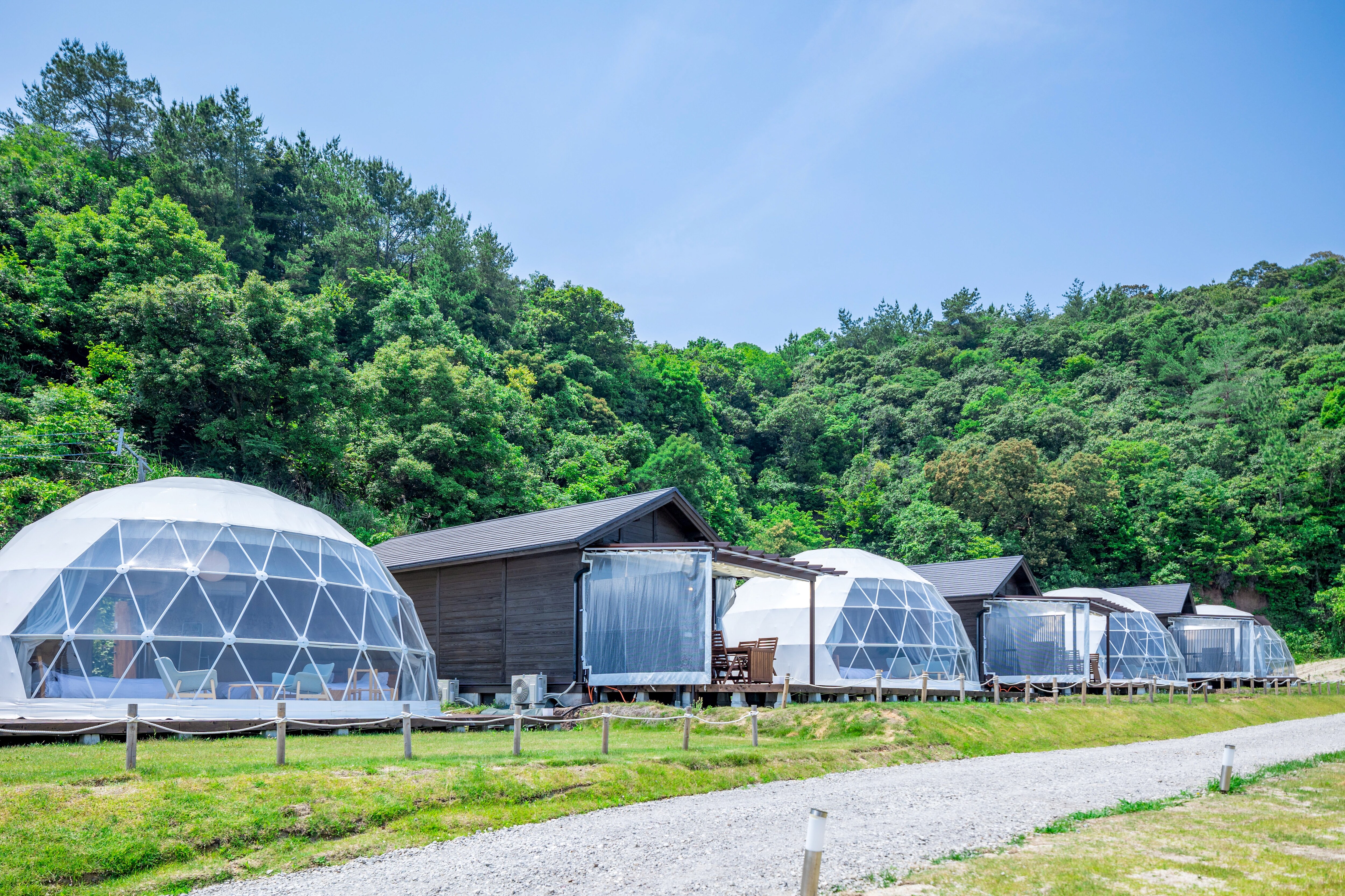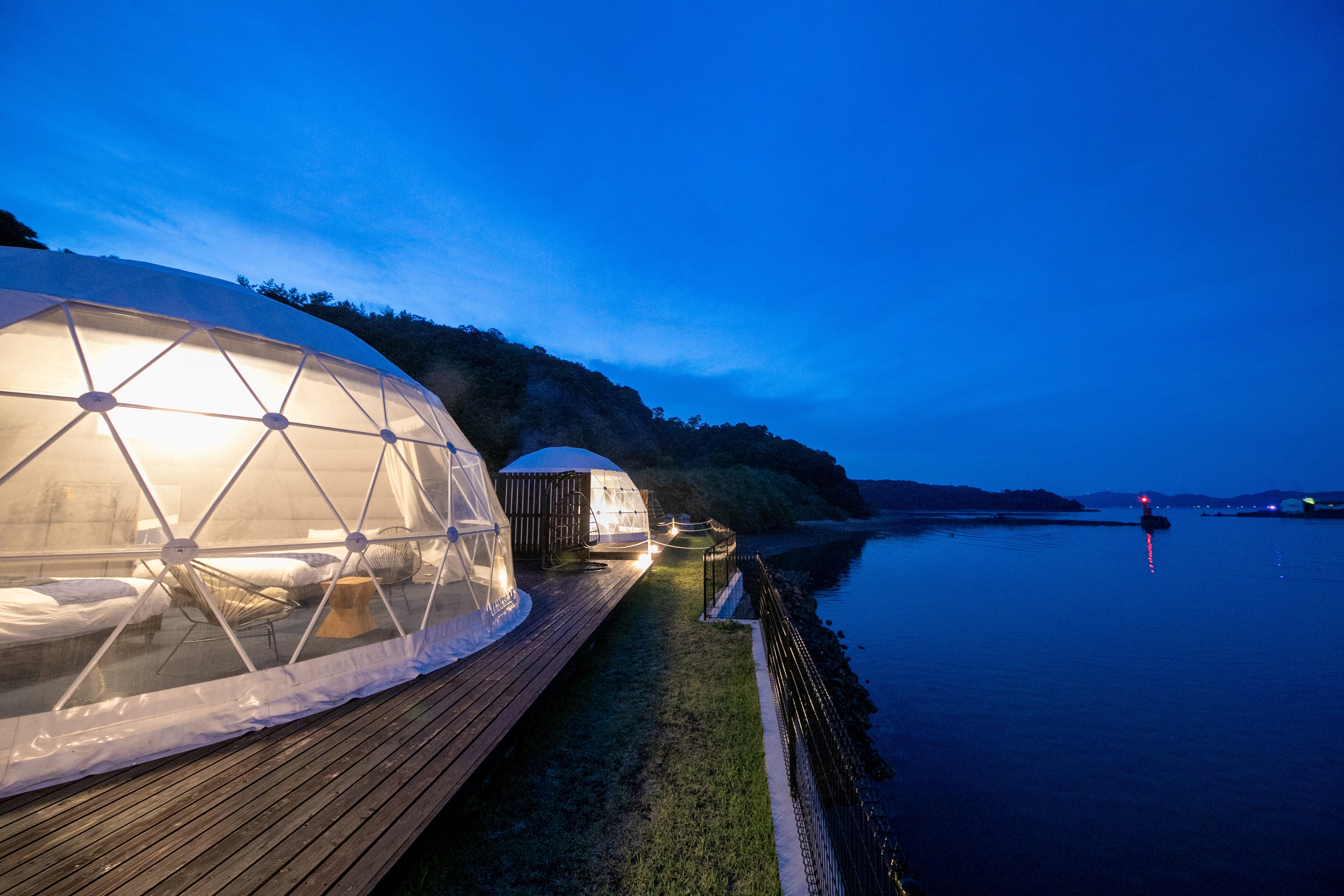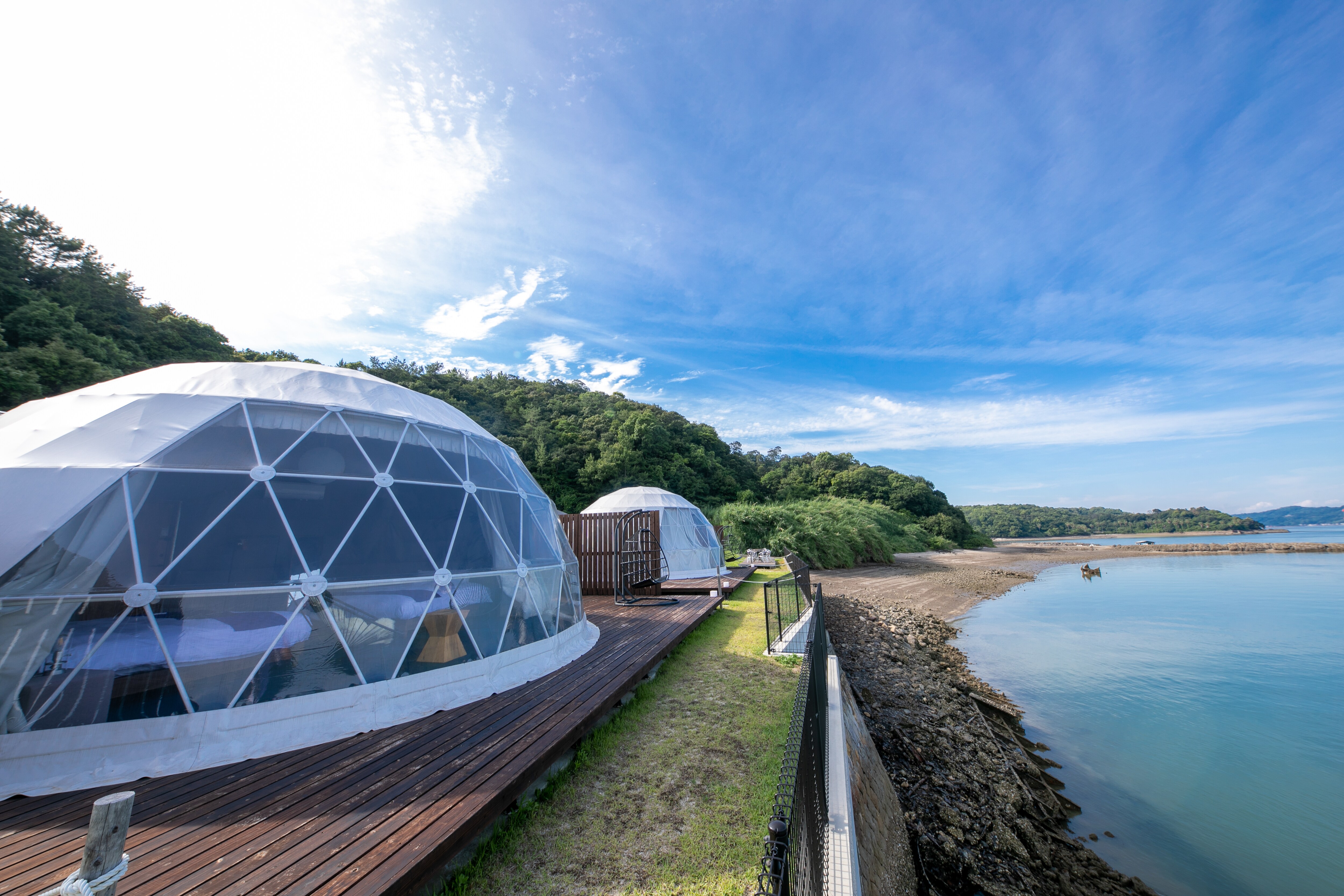 Sea Cruise Glamping, where you stay in unique dome-shaped tents with ocean views from all rooms Sea Cruise Glamping, limited to 9 groups per day, is a glamping stay in a spacious dome-shaped tent♪ Located in a spectacular location with the water surface sparkling in the sunlight spreading out before your eyes, you can stay in the majestic sea and the slow flow of time Includes glamping BBQ to taste seasonal ingredients from Amakusa, Kumamoto Gourmet x glamping to savour the fresh ingredients of Kyushu All rooms are equipped with separate living room / bath / toilet, so you can enjoy glamping in comfort without having to carry anything♪ *Due to the facility's equipment, we cannot accommodate changes in ingredients due to allergies. *There is a drink bar (including alcohol) in the management building. If you are concerned about allergies, we recommend using the plan where you bring your own.