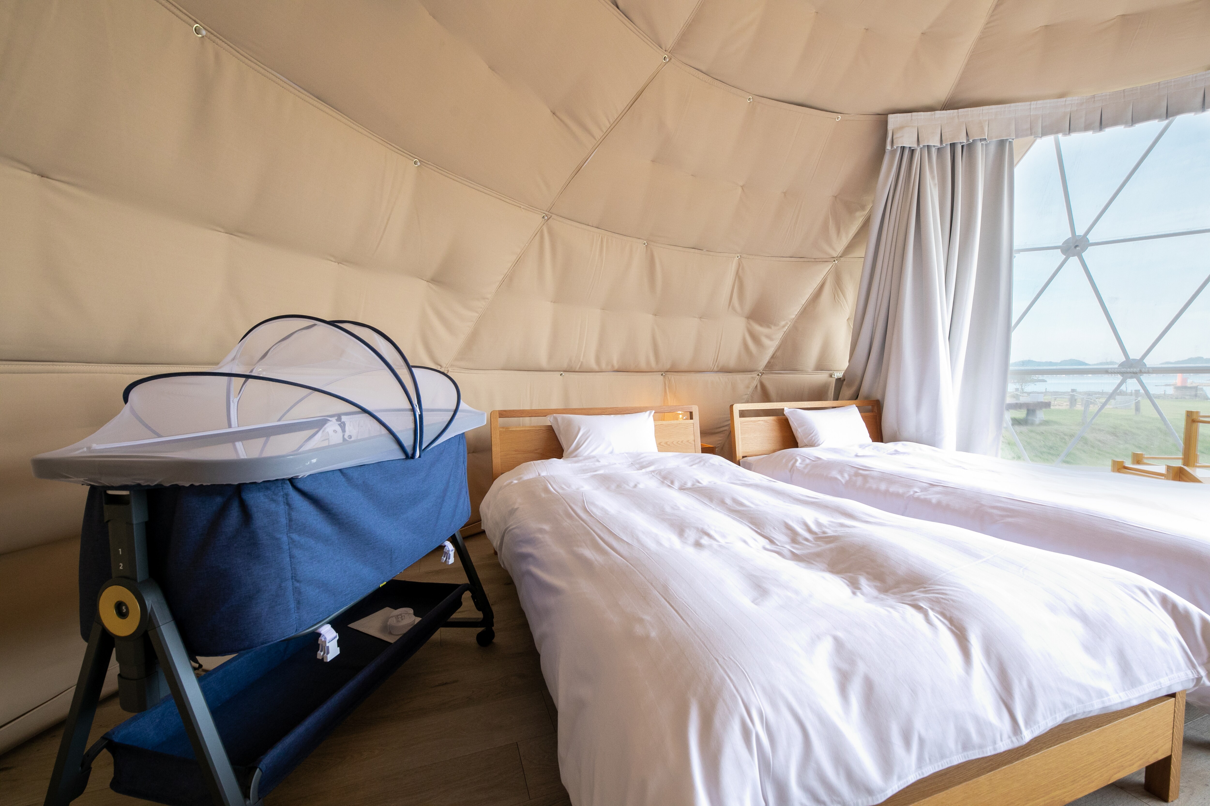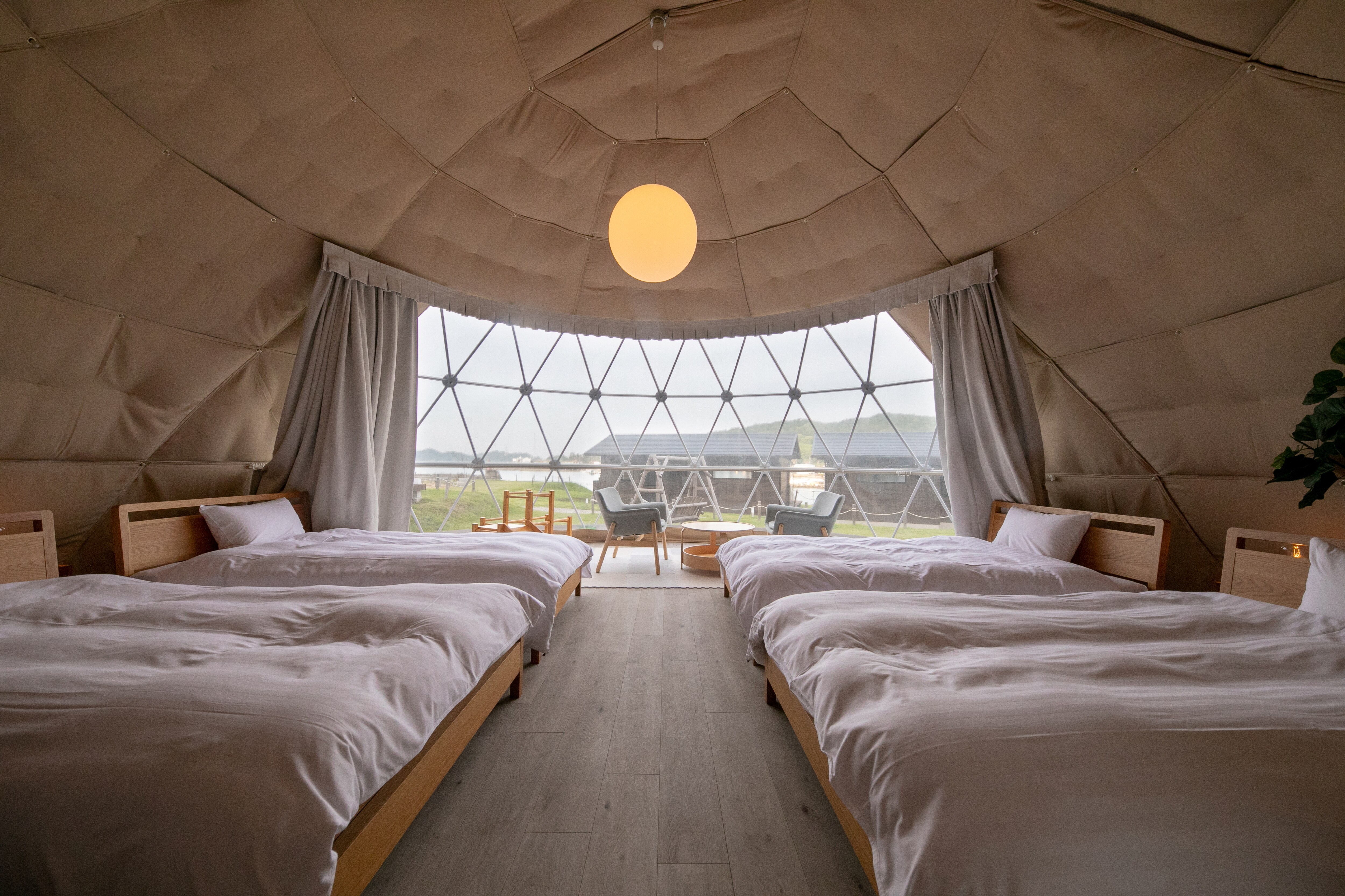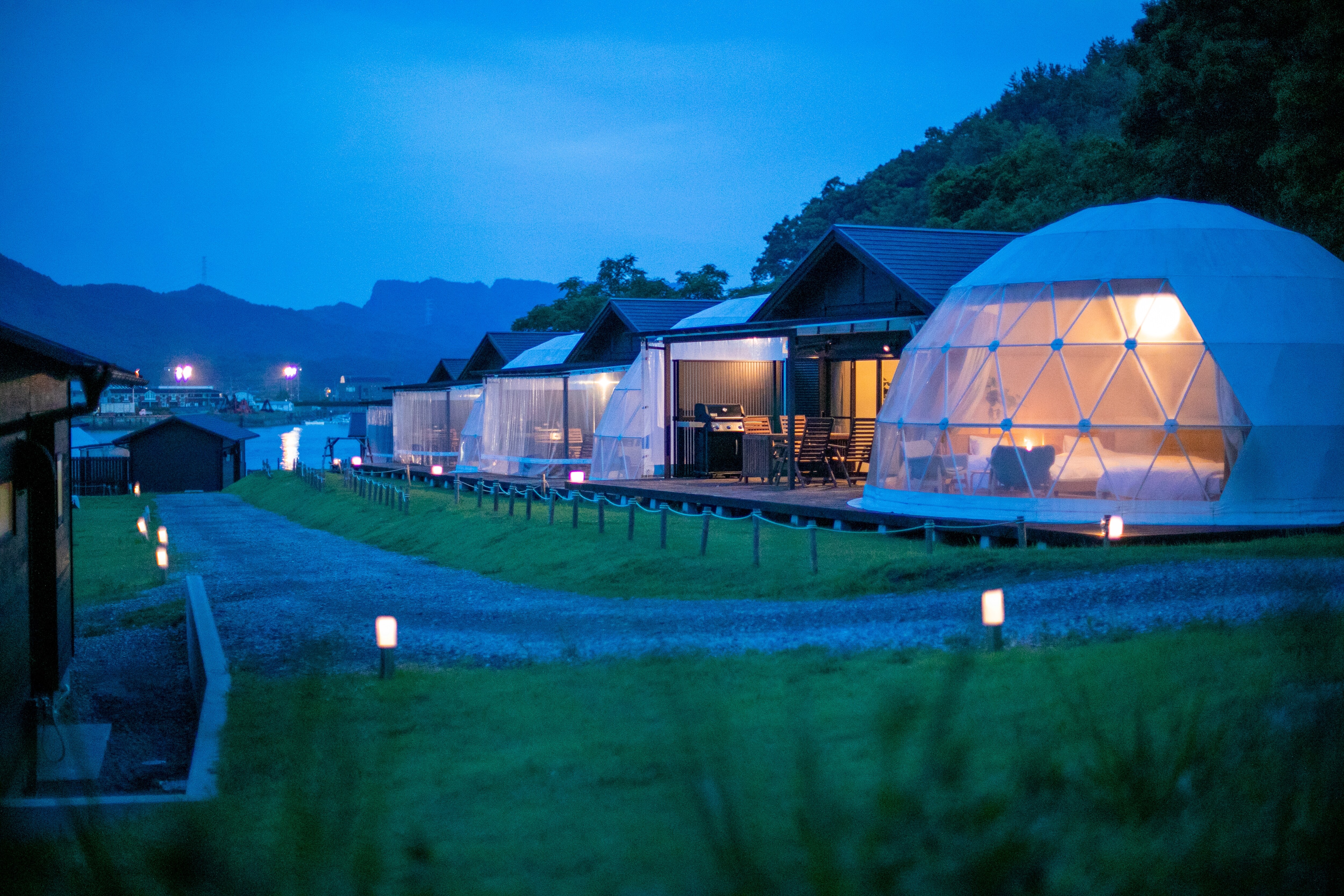 Sea Cruise Glamping, where you stay in unique dome-shaped tents with ocean views from all rooms Sea Cruise Glamping, limited to 9 groups per day, is a glamping stay in a spacious dome-shaped tent♪ Located in a spectacular location with the water surface sparkling in the sunlight spreading out before your eyes, you can stay in the majestic sea and the slow flow of time Includes glamping BBQ to taste seasonal ingredients from Amakusa, Kumamoto Gourmet x glamping to savour the fresh ingredients of Kyushu All rooms are equipped with separate living room / bath / toilet, so you can enjoy glamping in comfort without having to carry anything♪ *Due to the facility's equipment, we cannot accommodate changes in ingredients due to allergies. *There is a drink bar (including alcohol) in the management building. If you are concerned about allergies, we recommend using the plan where you bring your own.
