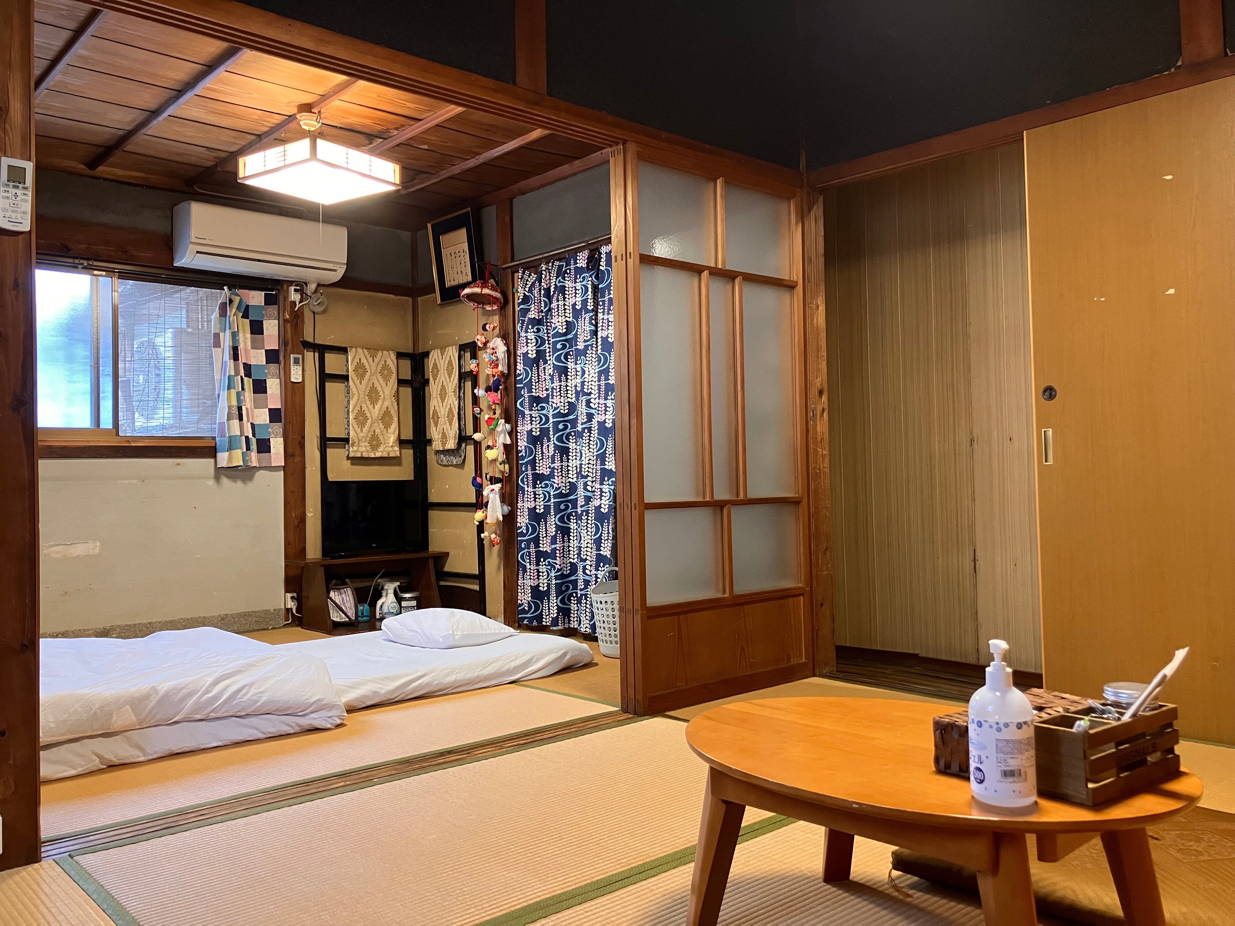 整栋旧房出租! 和家人朋友一起住在传统的日式房屋中,里面有公共休息室、电视室和厨房。 何不在这个充满怀旧气息的空间里,回忆一下自己的青春岁月呢? ■推荐点■ ①适合作为钓鱼基地 ②步行范围内有便利店、居酒屋、渔具店、超市、自助洗衣店等,非常方便。 3. 充满了红白机和超级红白机时代的怀旧游戏(^^♪ ■住宿信息■ ・有免费 Wi-Fi ・提供毛巾、洗发水、护发素、沐浴露等便利设施。 ・长期住宿可免费使用洗衣机(附洗衣粉) ・房间里提供茶和水。 ・您还可以自己做饭!还提供餐具、炊具和调味料。 我们还提供您可以与家人或朋友一起享受的棋盘游戏。 - 提供免费租赁自行车,方便短途散步或去超市。 *最多 2 个单位 ・市内也有提供送货和外卖服务的商店。我们也接受有关订单的咨询。 ■入住时间■ ◇15:00〜24:00◇ *如果您希望在上述时间以外办理入住手续,请提前联系我们。 ■ 付费服务 ■ ・租借睡衣(成人专用均码) *额外费用:每人500日元 *数量有限,如果您有兴趣,请提前告知我们。 ■前往住宿地点■ 如果您乘坐火车前来,从熊野市站步行约 7 分钟。 开车前来的话,在熊野尾鹫道路的熊野音泊IC下车(约3分钟) 如果您需要帮助,请随时联系我们。 ■条件和注意事项■ 有淋浴,但没有浴缸。 ・如果您想在入住或退房之前或之后寄存行李,请提前联系我们。 ・馆内严禁吸烟。请前往馆外指定吸烟区。 如果您想使用停车场,请联系我们。
