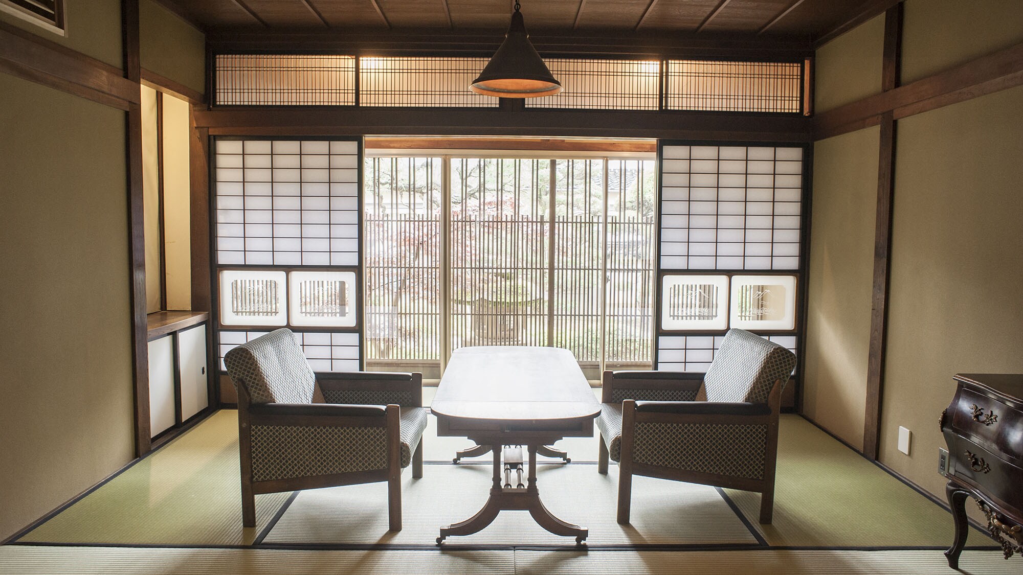 无餐饮,仅限住宿的方案 在具有百年历史的大正现代风情空间中,用古董家具布置的客房,感受历史的古民家之旅 【营业时间】 7:00〜21:00 ■入住时间:15:00〜21:00 ※如需在上述时间外办理入住,请提前至前一天联系。 ■退房时间:7:00〜10:00 【旅途中难忘的房间设施】 ・清新香气的原创香薰喷雾 ・混合季节性草本的原创草本茶 ・当地出云的热门咖啡店“STRINGS COFFEE ROASTERS”的咖啡套装 【体验・活动】 我们提供官网上刊载的各种体验活动。 在馆内附设的茶室体验茶道,以及乘坐人力车巡游隐藏的能量景点原创路线。 请随时与我们联系。 【交通】 步行:从出云大社步行5分钟 电车:在出云大社前站下车→步行5分钟 飞机:从出云结缘机场驾车30分钟 【停车场】 有4个专属免费停车位提供给顾客使用。 若停车位已满,工作人员会引导至第二停车场,请您开车至设施前。 【设施注意事项】 ・NIPPONIA所有设施均统一没有电视和时钟设置,旨在让您感受当地风情并放松身心。 ・由于保留了古民居的原始风貌进行改造,因此不支持无障碍设施。 ・由于是古民家的木质建筑,结构容易传音。